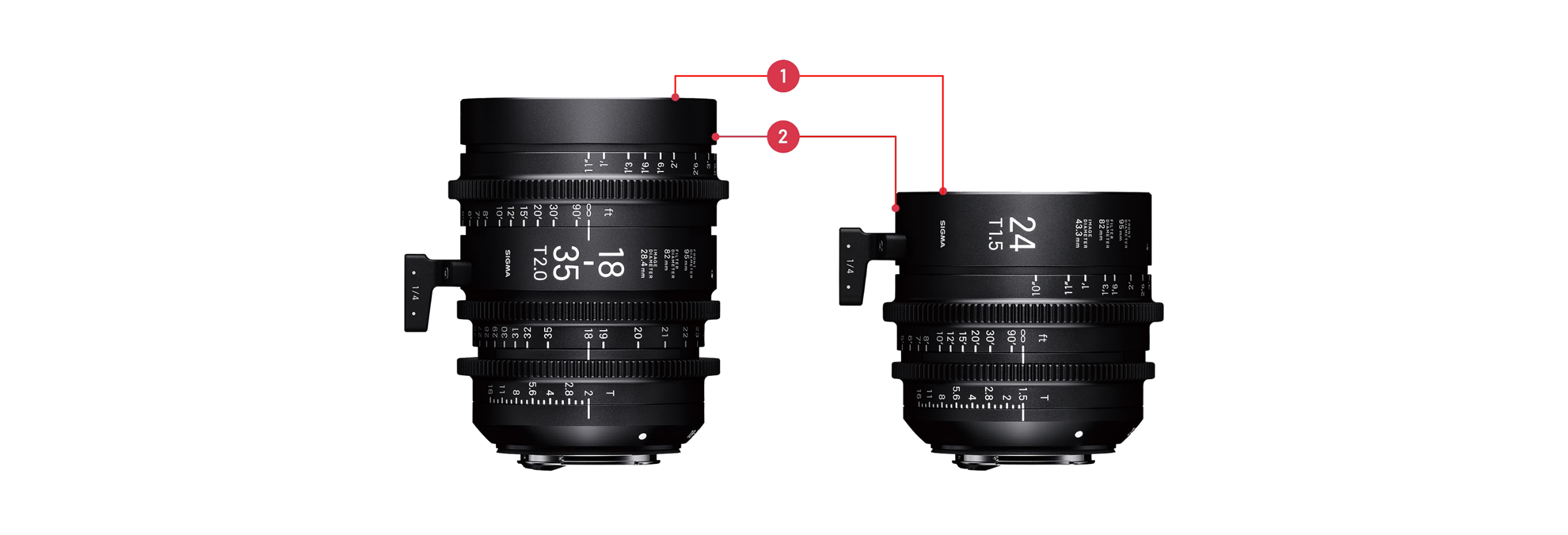 Bei den Objektiven 20 mm~85 mm T2 FF und 135mm T2 FF beträgt der Frontdurchmesser 95 mm, ähnlich wie bei anderen Cine-Objektiven, und ist mit Matteboxen kompatibel. Im Vergleich zu Objektiven derselben Klasse sind die Cine Objektive von Sigma leichter und kompakter.