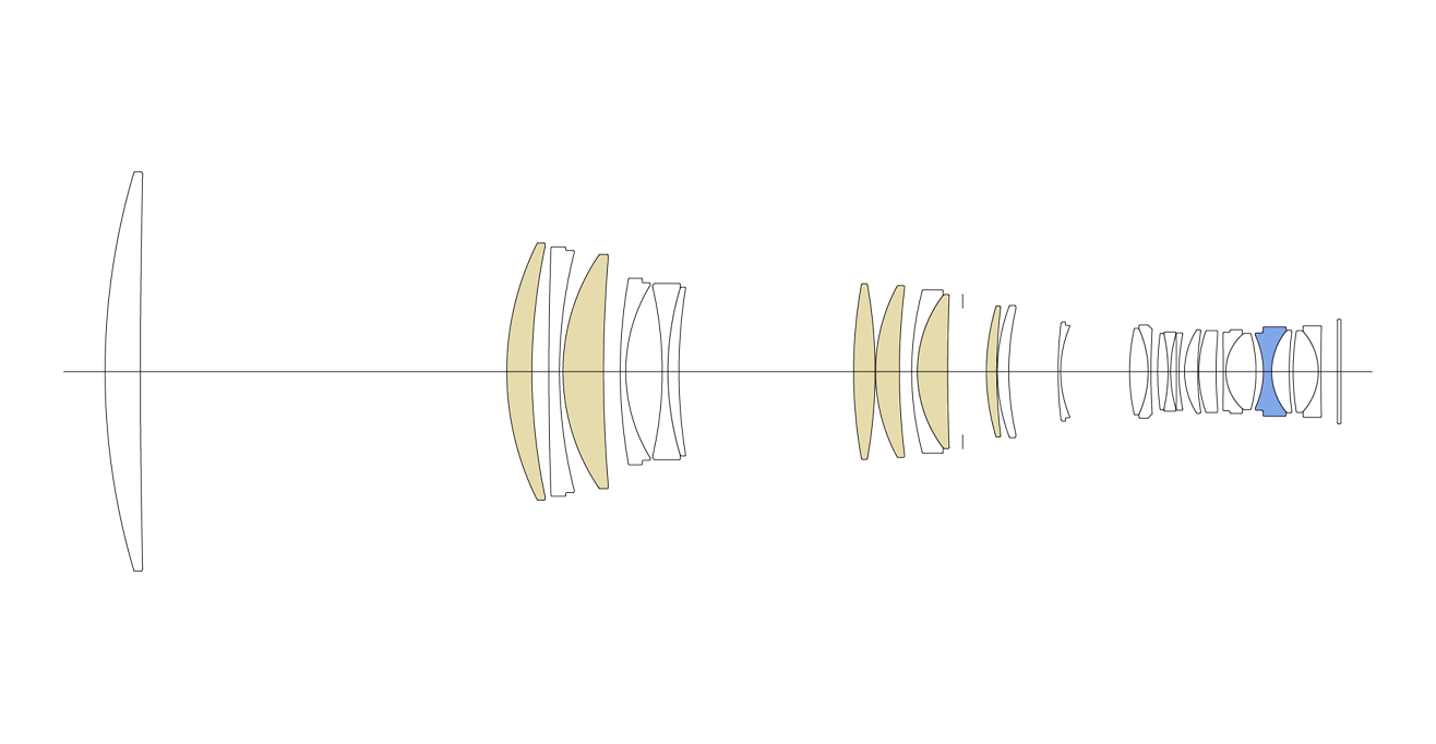 Das Sigma 300–600mm F4 DG OS | Sports verfügt über 28 Objektivelemente in 21 Gruppen, darunter 6 FLD- und 1 SLD-Glaselemente, Glas mit anomaler Dispersion und Glas mit hohem Brechungsindex. Sein optisches Design bietet eine hervorragende Korrektur verschiedener optischer Aberrationen, wie z. B. chromatischer Aberration, über den gesamten Zoombereich. Obwohl es sich um ein Zoom-Objektiv handelt, bietet das Sigma 300–600mm F4 DG OS | Sports die unvergleichliche optische Leistung eines Festbrennweiten-Objektivs.