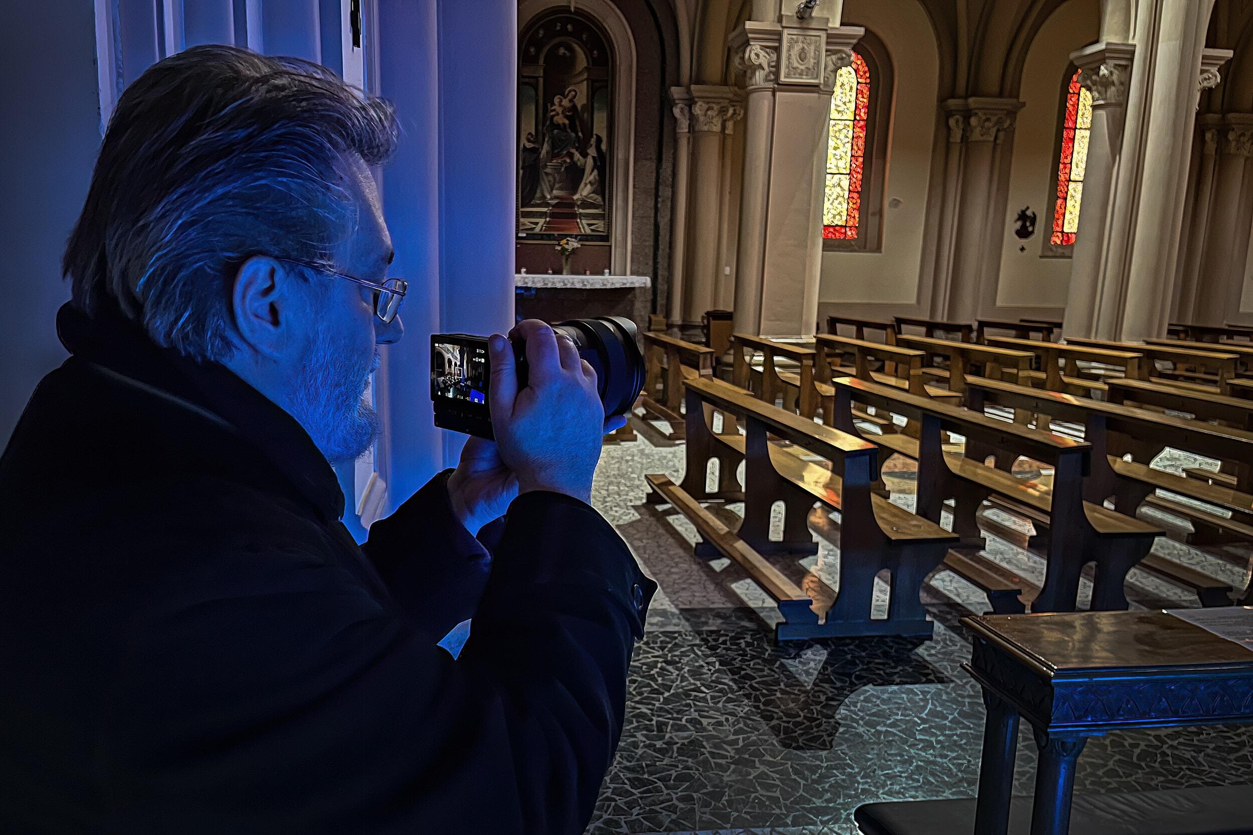 Während ich dieses Objektiv testete, war das Wetter meist regnerisch oder bewölkt. In den Kirchen war es ziemlich dunkel, und ohne Stativ war es definitiv nicht einfach zu fotografieren. Andererseits war es eine fantastische Gelegenheit, die grosse Blende des neuen SIGMA 14mm F1.4 DG DN | Art und seine hervorragende Schärfe und Qualität auch bei voller Blendenöffnung zu nutzen. Obwohl es kalt und nass war, kamen dennoch einige Menschen zum Beten herein. Ich bewegte mich lautlos um sie herum und fotografierte an verschiedenen Stellen mit reichlich oder wenig Licht, wobei ich darauf achtete, sie nicht durch Geräusche zu stören. Der elektronische Verschluss der SIGMA fp L leistete hervorragende Arbeit, um meine Bewegungen geräuschlos zu halten.
